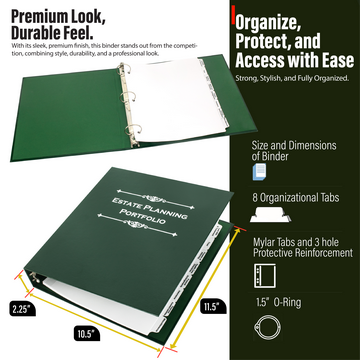 Take control of your estate planning with this Estate Planning Portfolio Binder with Tabs, designed to help you organize and protect the documents that matter most. Whether you’re preparing wills, trusts, financial records, or medical directives, this binder ensures everything stays in one safe, easy-to-access place.
